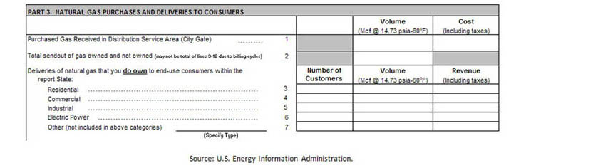 Examining the Updated EIA-857 form, you should note (1) there is no provision for reporting the volume of natural gas stolen by residential, commercial or industrial customers bypassing installed natural gas meters and (2) there is no provision for reporting natural gas stolen by thieves who are not customers.